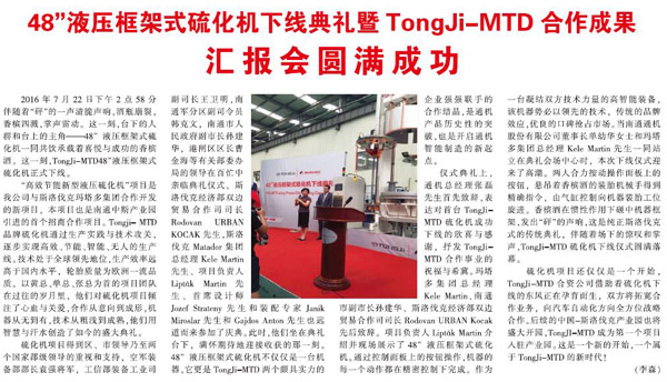 新闻动态 相关栏目: 企业新闻 | 行业资讯 | 通机月报 | 公司参加省工业机器人应用技能大赛获奖 2016-11-02 48"液压框架式硫化机下线典礼暨TongJi—MTD合作成果汇报会圆满成功 2016-08-01 日本联合株式会社到公司考察 2016-03-11 南通市纪委书记庄中秋到公司考察 2016-03-10 热烈祝贺千亿官方网站2015年总结表彰 暨2016迎新晚会圆满结束 2016-01-26 贺:南通通机股份新厂区奠基 2016-01-25 热烈祝贺南通通机股份新一届工会委员会成立 2016-01-22 热烈庆祝千亿官方网站在新三板隆重挂牌 2016-01-20 上一页1...45464748495051...52下一页 转至第 加载更多